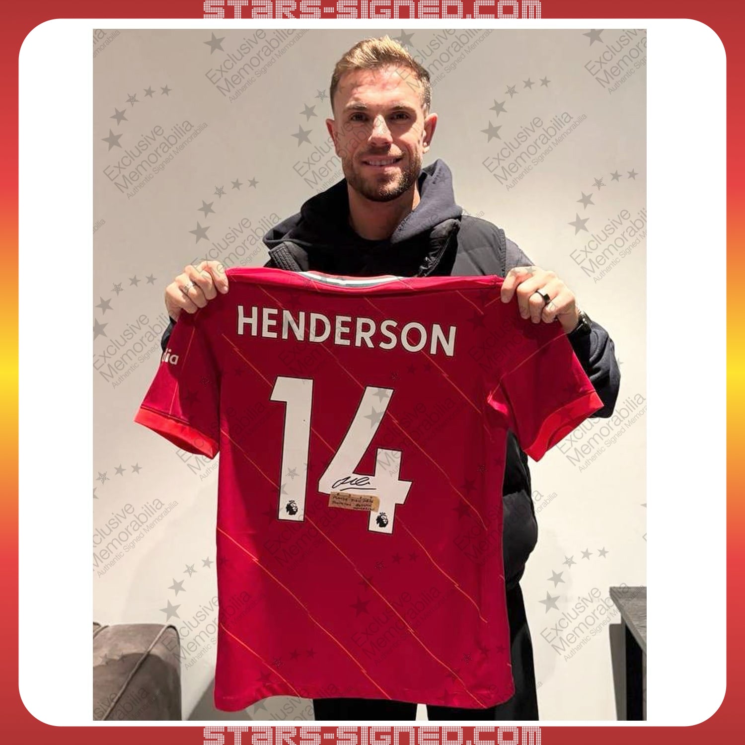 Product Name: Jordan Henderson Back Signed & Framed Liverpool Home Jersey