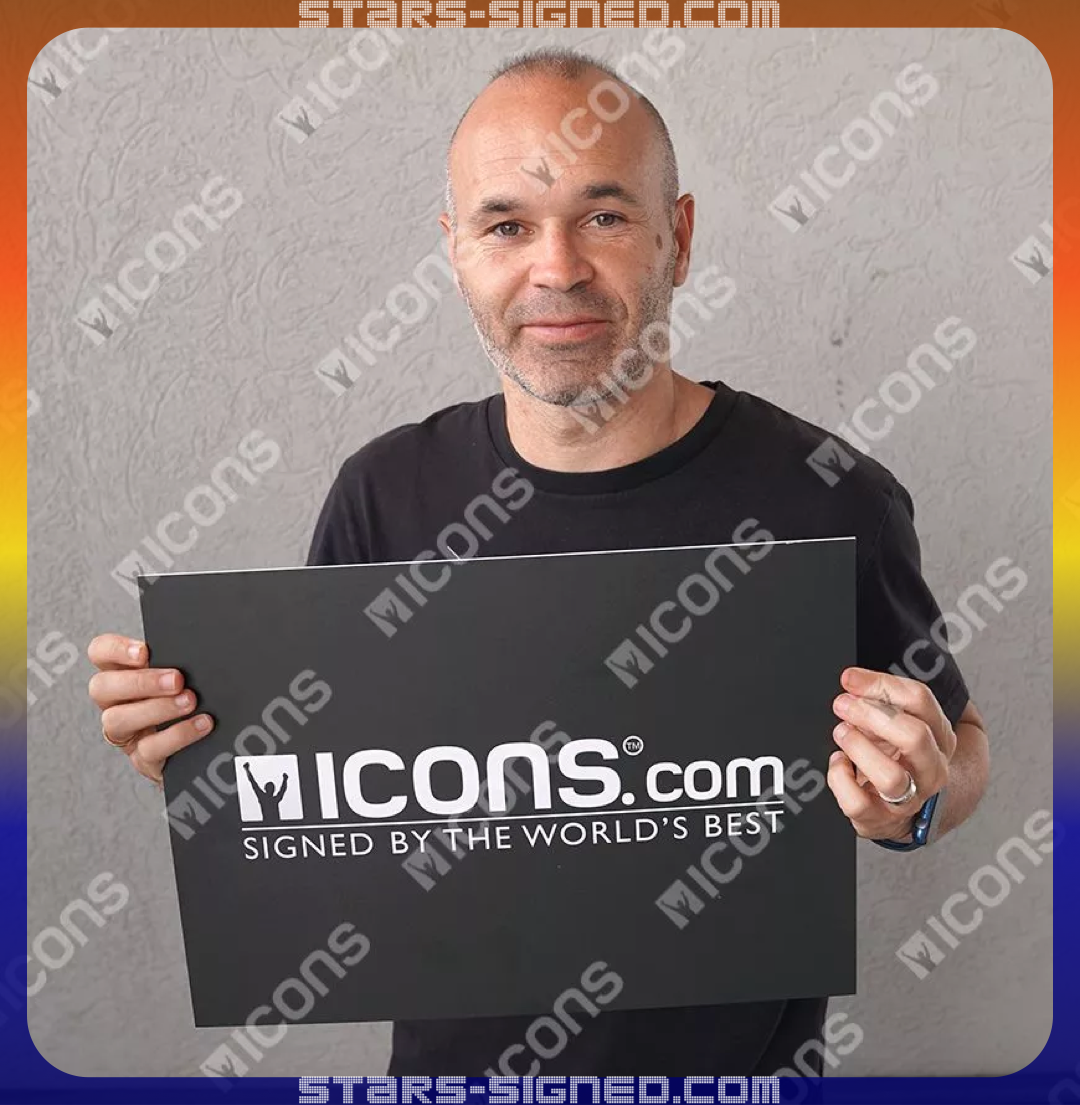 恩尼斯達 Andrés Iniesta 巴塞隆那主場球衣裱框 配金線條外框 (背簽)